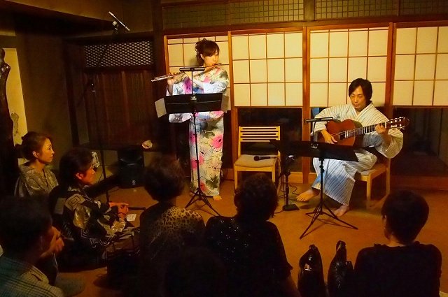 京町家ミニコンサート 投稿日: 2015年10月2日2015年10月2日 投稿者: hinataguitar 2013.7.14 京扇子の老舗・大西常商店にて 祇園祭最中のライブ 二人とも浴衣姿での登場にお客さんたちも大喜びでした。お客さんも浴衣のかたが多い日でした。